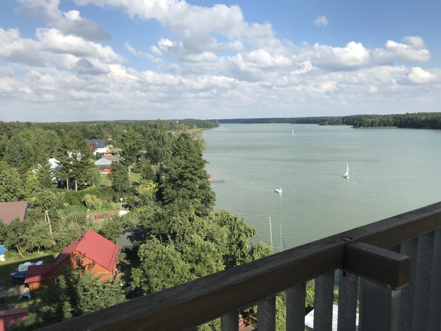 Kolejny punkt to Wieżyca – najwyższe wzniesienie na Pomorzu (328,7 m n.p.m.). To nie Tatry, ale widok z tamtejszej wieży widokowej był naprawdę imponujący. Wokół tylko lasy i jeziora – coś pięknego.